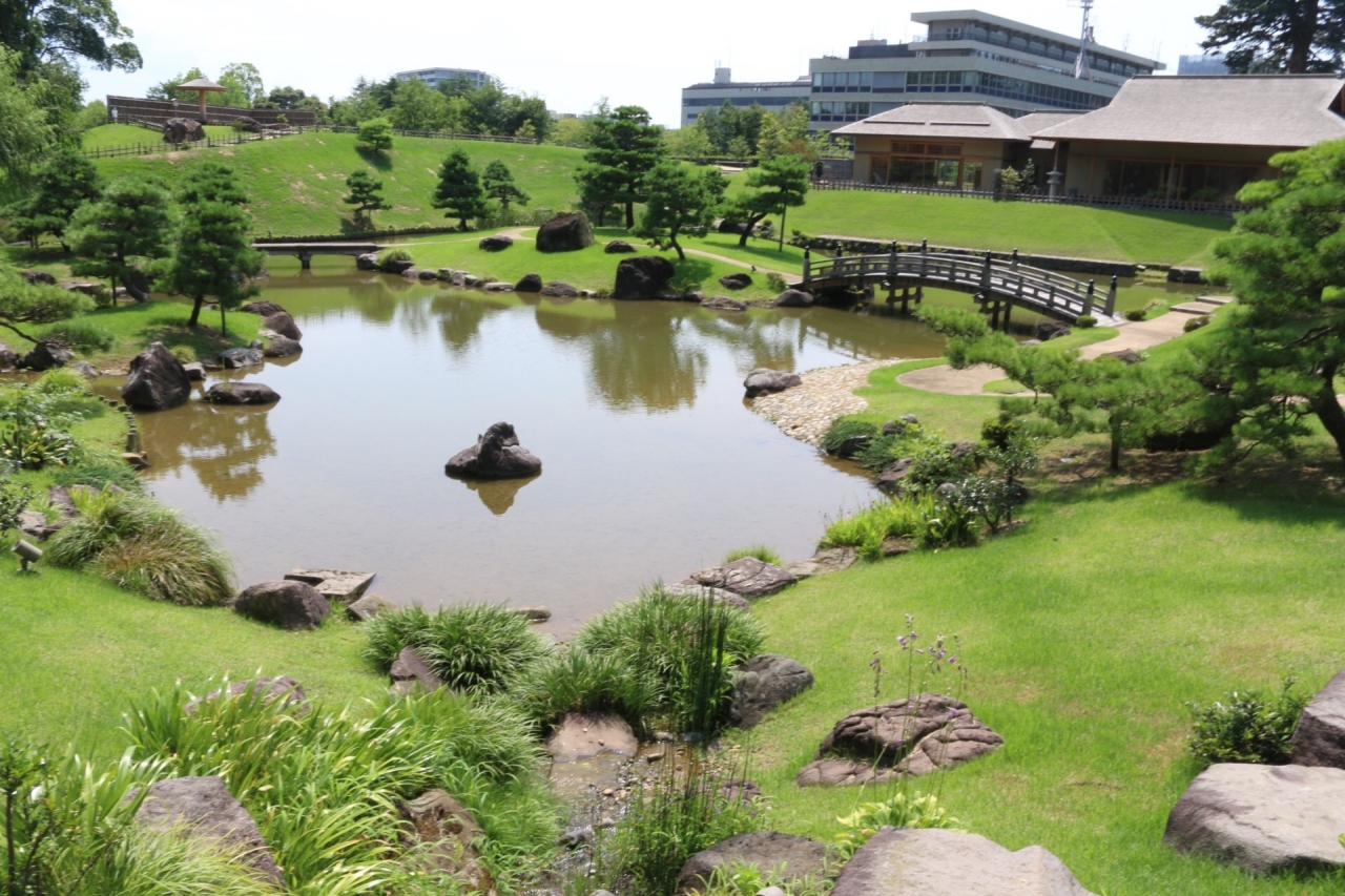 名園・兼六園の中ではなく金沢城内にある、殿様用の庭園です。全国的に城内に庭園が存在することは意外と珍しい事と思います、(岡山城・彦根城位?・千代田城でも坪庭程度)滝を作るため大きな山を築き上げ、その付近より撮影しました。広い城内に豊富な水・・・さりげない威圧感を与えているかもしれません。