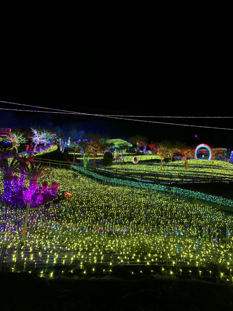 去年に続き、今年もグランイルミを観に行きました。恐竜エリアが増えていたり、金曜日もジップラインができるようになっていたり、10分おきに流れる映像美も変わっていて、楽しめました!夕方5時半過ぎに行ったのですが、ジップラインはものすごーく列を作っていたので、後回しにし、3つの映像と音楽を楽しんでから、再度行ってみると、今度はガラガラ。すぐに挑戦できました。