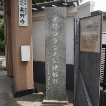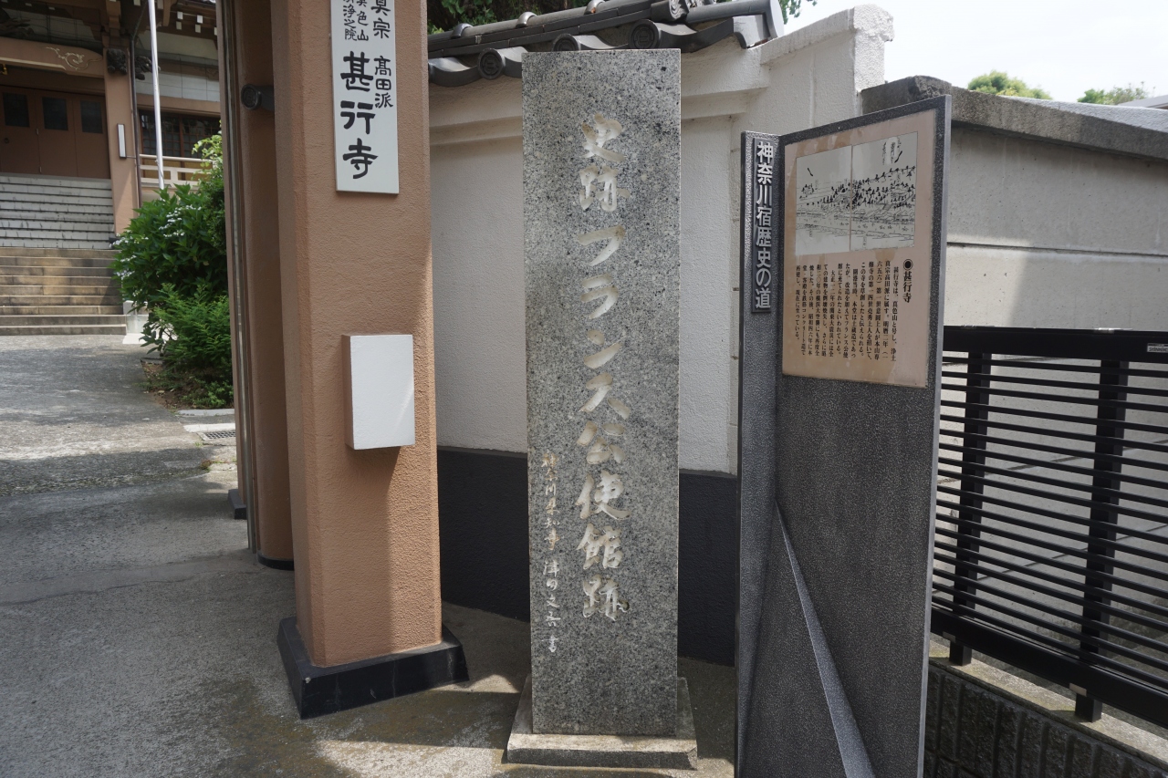 1959年の横浜開港当時、神奈川宿にあったこの寺に公使館が置かれました。本堂は土蔵造でしたが、改造を加えてフランス公使館に充てられる。現在の本堂は、昭和46年に鉄筋コンクリート造で再建されたものです。