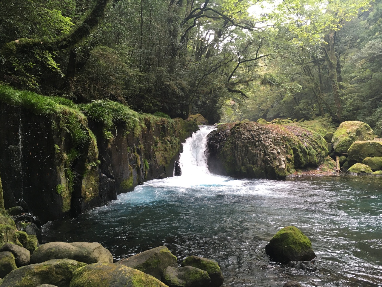 熊本地震の影響を受けた場所だそうで、まだ一部工事をしていました。川沿いの遊歩道を散策でき、マイナスイオンを浴びながら気持ちの良いハイキングでした。紅葉シーズンの前だったため、人も少なく落ち着いた場所でした。
