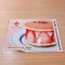 スイーツや軽食メニューもたくさんあり季節物のパフェ風どら焼きをオーダーした。セット割引100円は良心的。