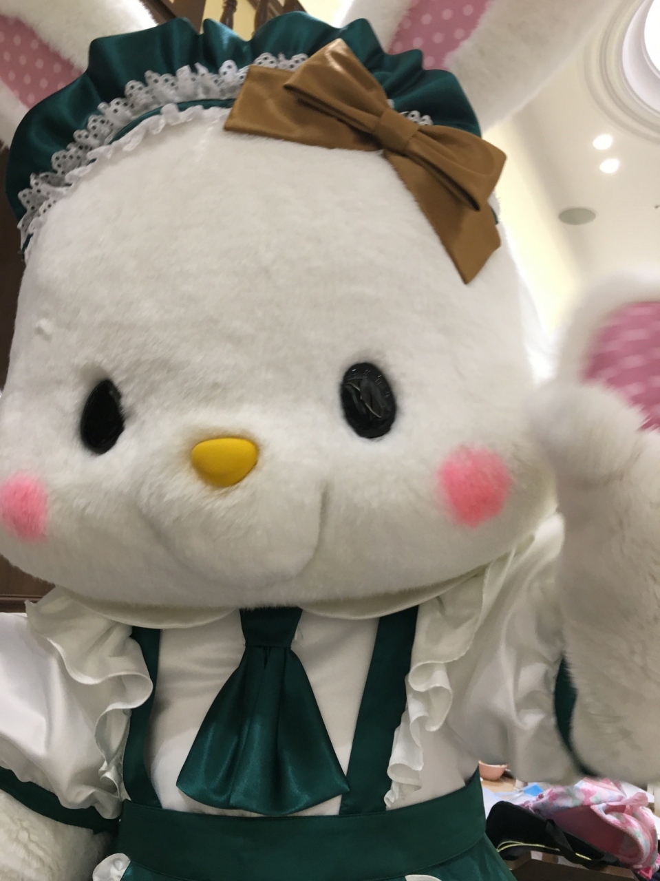 お洒落な内装になり、ランダムでキャラクター達も登場します。私たちはシナモンロールとメルに遭遇しました。カフェ風コスチュームでなかなか可愛い。