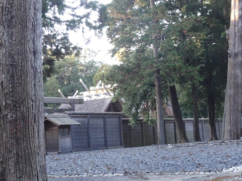 ツアーで行ったので、商工会議所の専任ガイドが付き正殿の写真スポットへ行きました。階段を上がると写真撮影禁止で、式年遷宮の話や屋根の上に見える鰹木の数や千木の形、風穴について説明がありました。20年に一度、お宮やご装束、神宝をすべて新しく作り変えるそうですがその規模の大きさに驚きました。平日、夕方は見学者も少なく混雑なく歩けました。