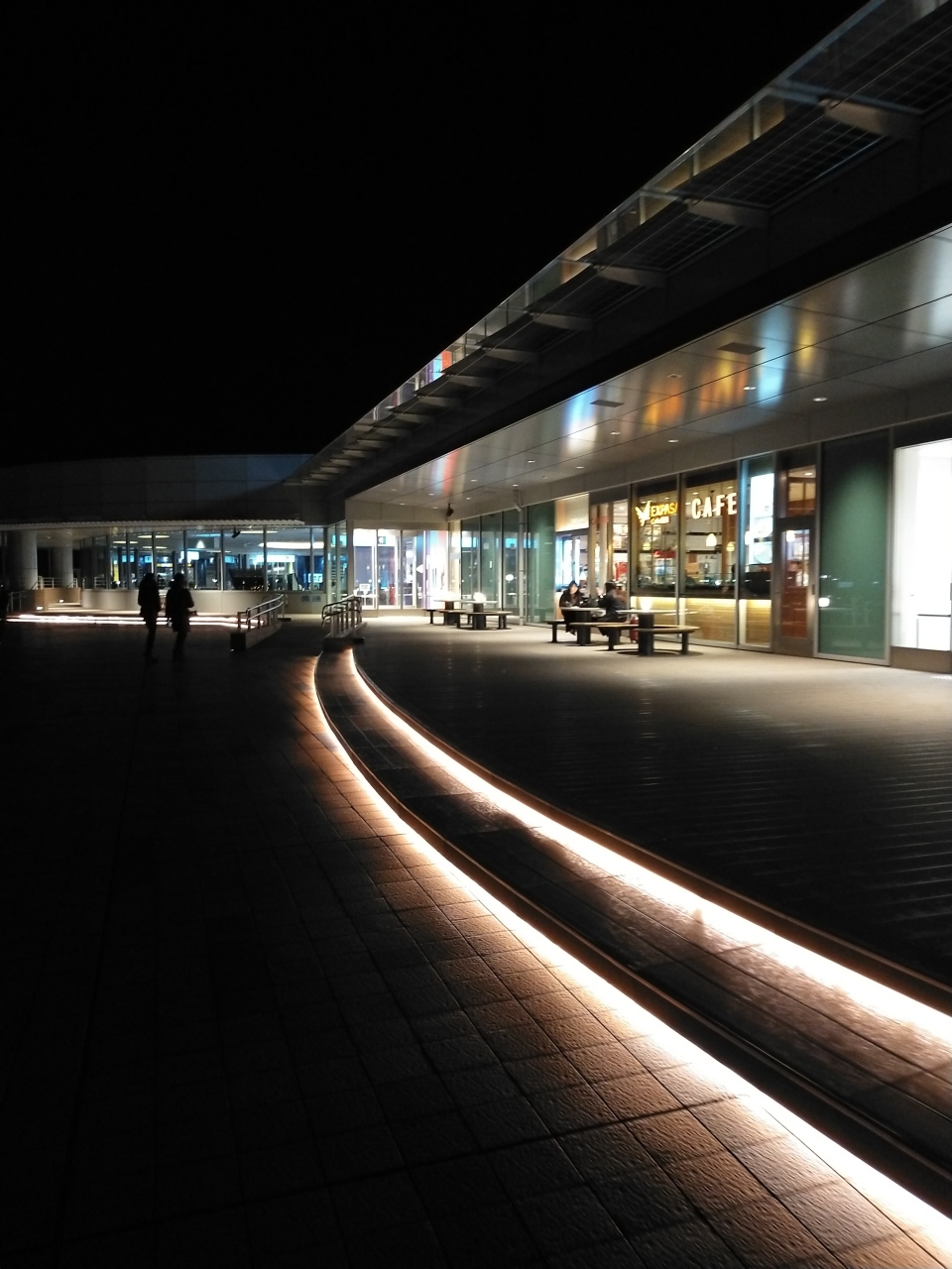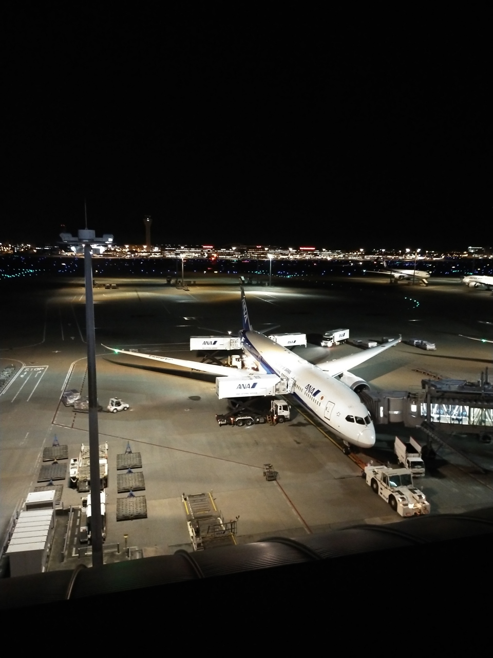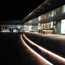 24時間開放されている展望デッキで空港の夜景を楽しむ