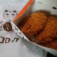 コロッケだけでなく、メンチやカツなど各種揚げ物が並びます。黒毛和牛のビーフコロッケ180円(税別)を購入、温め方の説明が書いてありましたが、冷めていてもサクサクと美味しいコロッケでした。
