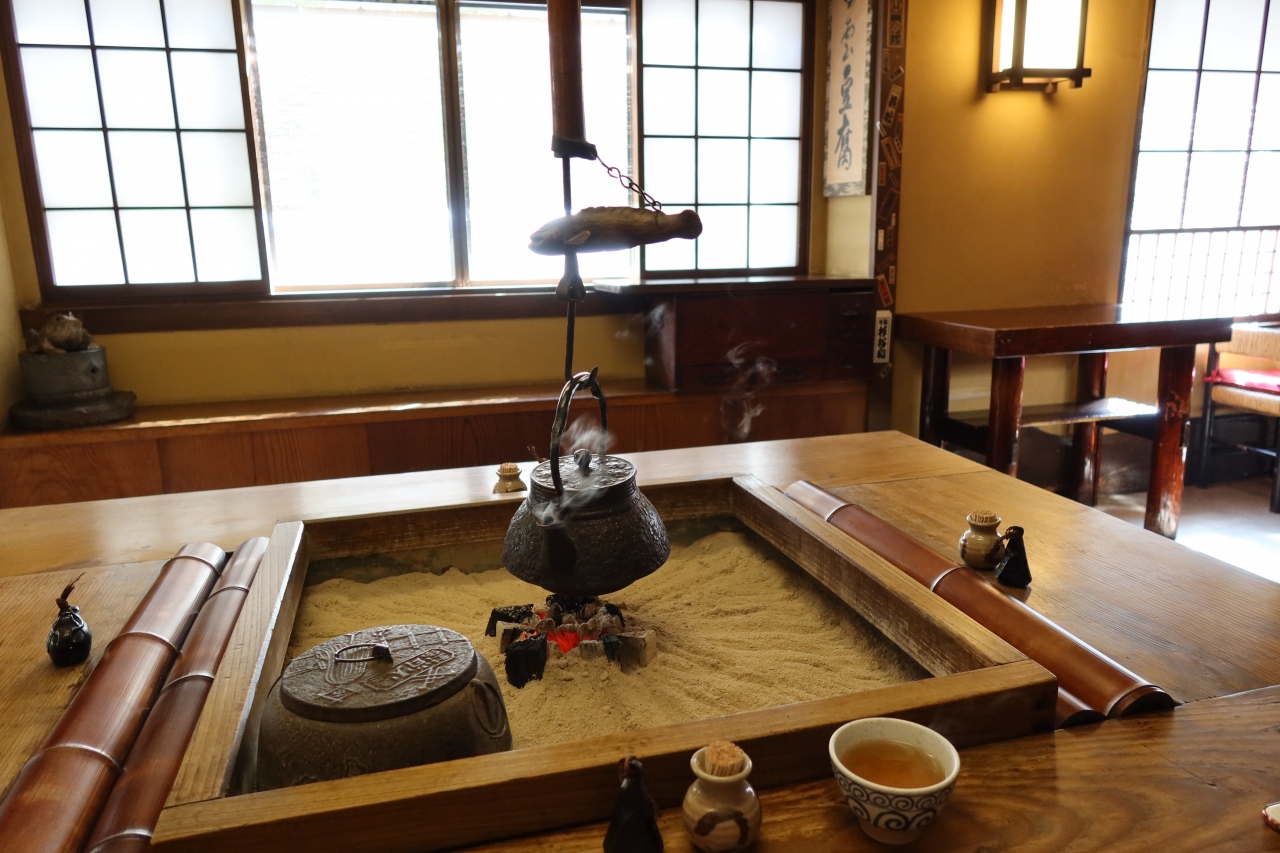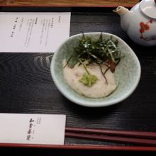 箱根湯本駅から湯場滝通りを歩き早川を渡った角、はつ花本店の対面にある和館が知客茶家です。平日の昼過ぎに行きましたが意外と混んでいて囲炉裏の炉端席に通されました。頂いたのは「山芋点心」。まぐろ山かけ、早雲豆腐、とろろ、麦ごはん、吸い物が付いて2000円弱。とろろの味を充分に味わえる定食になっており、名物の早雲豆腐は特に美味しいです。健康的なとろろは何度食べても美味しいです。