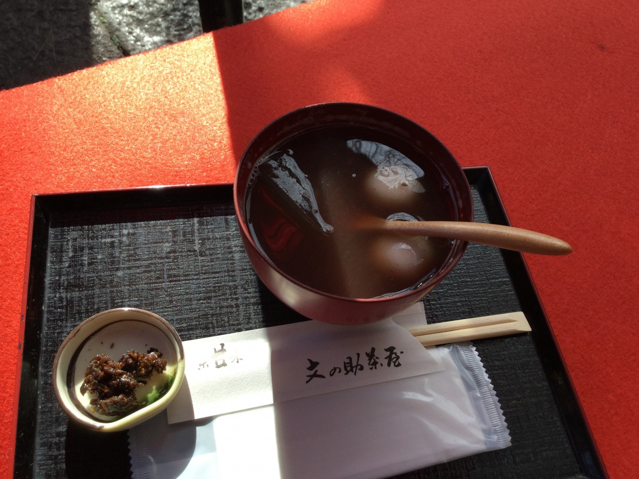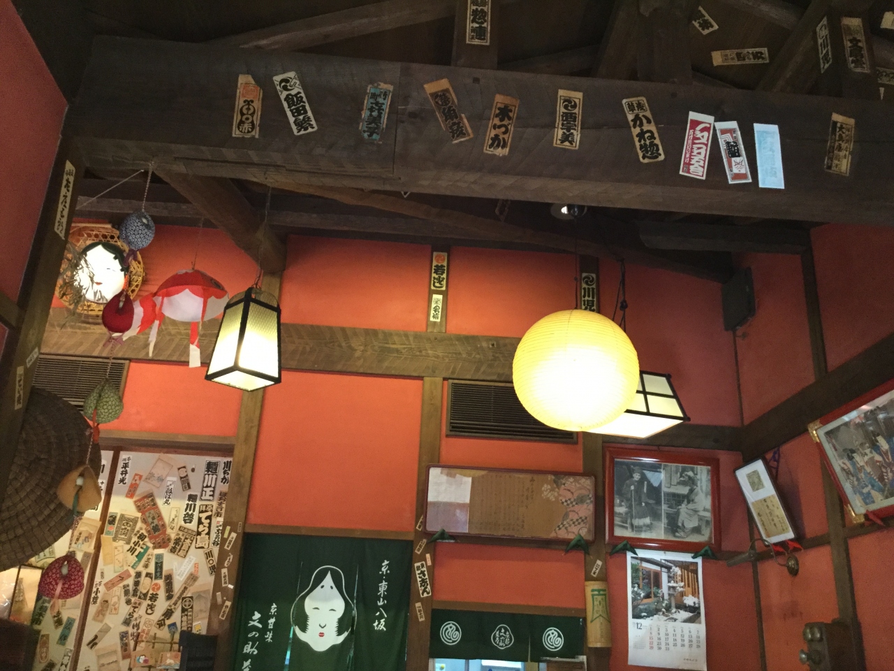 京都の八坂神社から清水寺に行く途中、二年坂を少し下がった所にある情緒溢れる茶屋です。2代目桂文の助さんが作ったお店だそうで落語の雰囲気もある中で甘いものを頂き、ほっとくつろげます。まだ紅葉が残っている時に行って柔らかな日差しの中で、お店自慢のわらび餅入りの善哉を頂きました。石畳みの道を歩いての途中で、温かな甘さにホッと一息つき休め、過ぎゆく秋の情景を店先で味わうことも出来ました。
