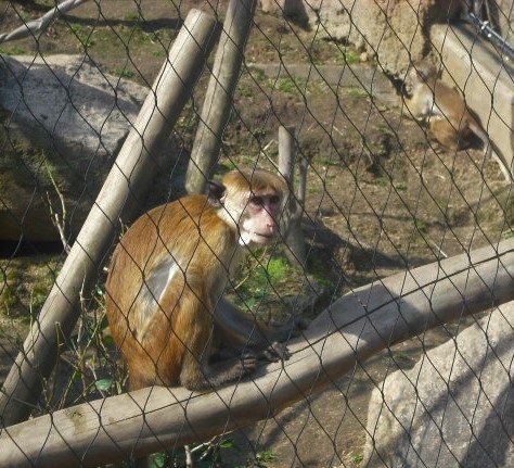 2月の寒い日でしたが太陽は出ていました。猿がいる動物園ではハヌマンラングーンも割と近くに座っていました。