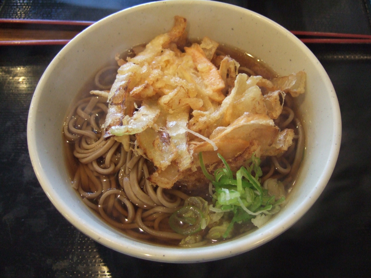 かき揚げそばをオーダーしましたが、かき揚げは少し揚げすぎで、出汁も薄かったのが残念。