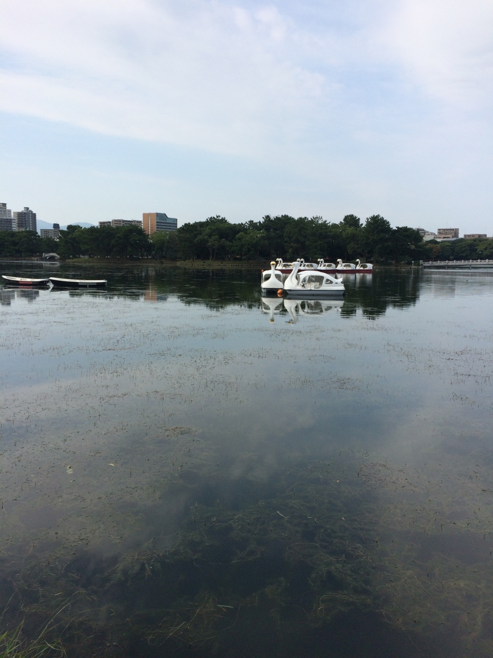 地下鉄の大濠公園駅から徒歩で歩いて行くと左側の敷地に入口があり、大濠公園に到着しました。10月でツツジは咲いていず、紅葉もまだそこまで始まっていませんでしたが、天気が良く大濠公園内の池の周りをランニングしている人が多かったです。