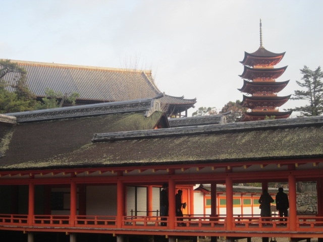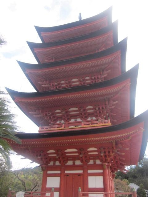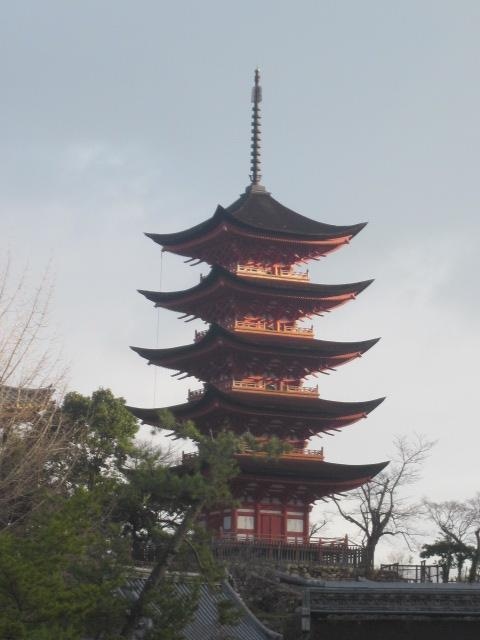 応永十四(1407)年の建立といいますから、既に六百年余の歴史を誇りますが、更に歴史ある宮島の中では、その歴史が相対的に目立たない、というのがまた味わい深いですね。勿論、重要文化財に指定されていますので、遠方からの景観も厳島神社の廻廊などから楽しんだ後は、直近から建物の細部の屋根の反り具合なども眺めてみると、この建造物の素晴らしさがより実感できるかなと思います。