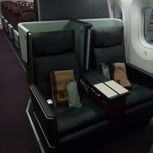 ファーストクラスシートは、B787-8より一足早くデビューしたA350-900と同じタイプで国際線ビジネスクラスのようなシェル型で電動リクライニングとマッサージが付いてます。