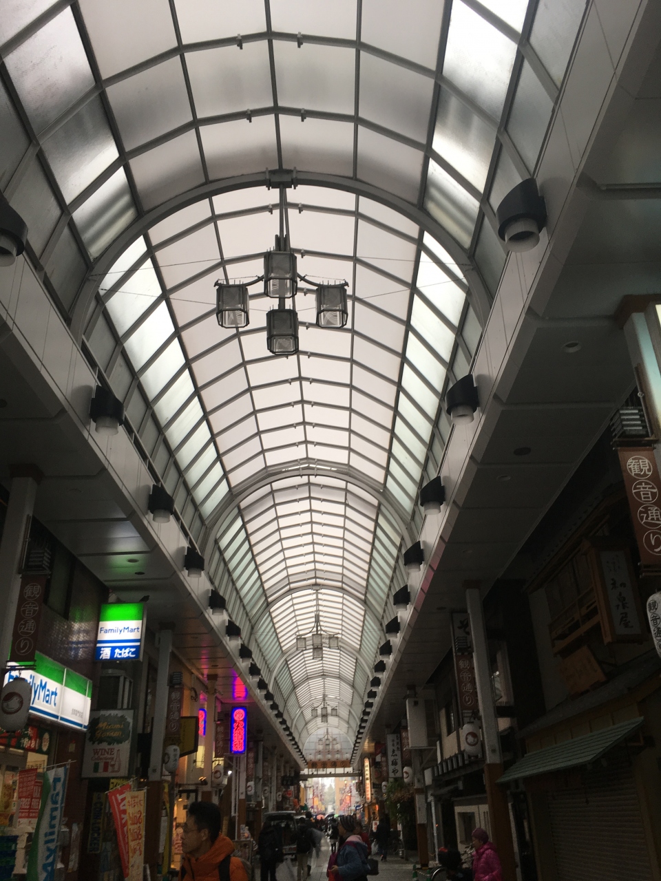 朝から小雨が降っていて、どうしょうか悩んで、せっかくだからとり合図行って見ることに、雨にも関わらず人が結構多い、人力車も待機していましたが、でも歩くことにしました。仲見世通りを少し歩くと、屋根付きの商店街を発見、傘から解放