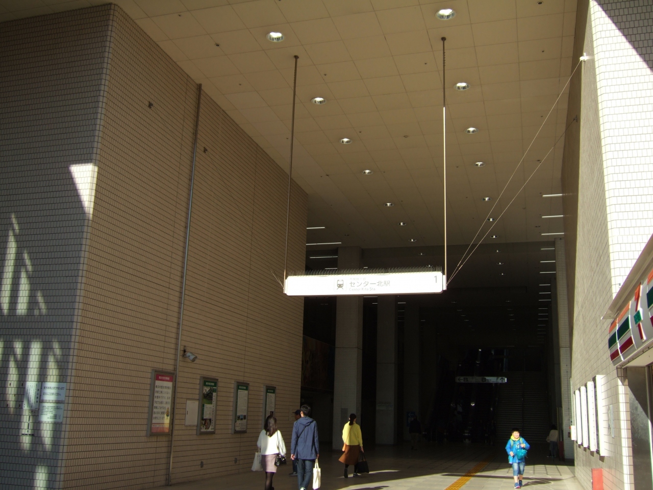 センター北駅も地形の関係で、南北でかなり高低差があります。