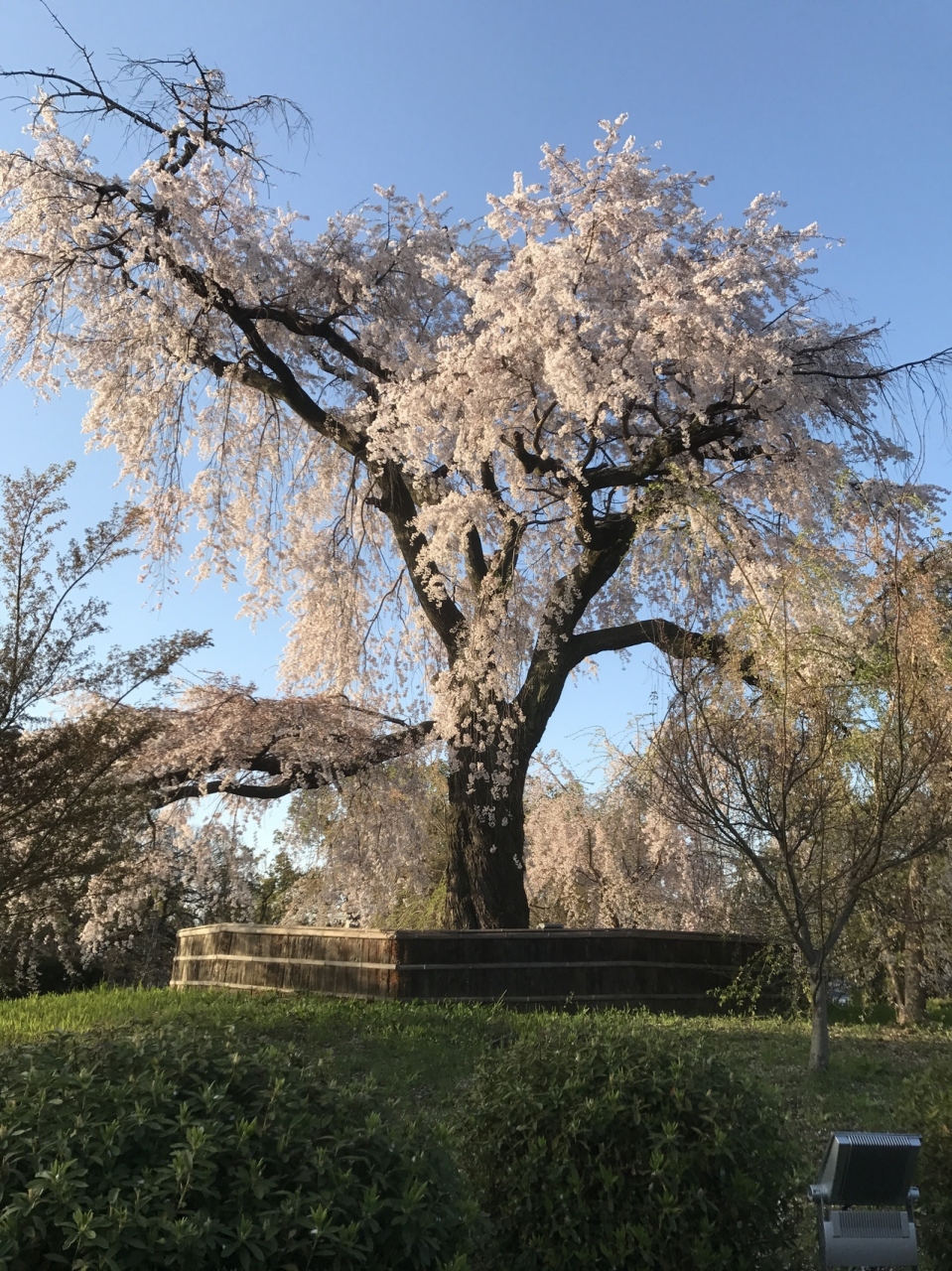 八坂神社の奥にある円山公園。桜の時期は特に賑わいます。花見シーズンに伺いました。テントを引いた花見客がぎっしり。スペースはほとんどありません。私たちは歩きながらのんびり枝垂桜を鑑賞。桜の木のスケールに圧倒されます。