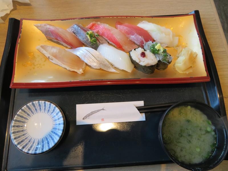 握りと軍艦巻合わせて10貫。磯の香りがする味噌汁も付いていました。