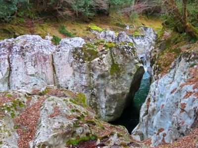 紅葉で人気のスポットのようですが、木々の葉っぱがすべて落葉した冬に訪れました。そのため、奇岩怪石と山国川の清流が作り出すダイナミックな地形のみを純粋に楽しむことができました。探勝道が整備されており、魔林峡まで渓谷沿いに歩いていくことができるのも良かったです。