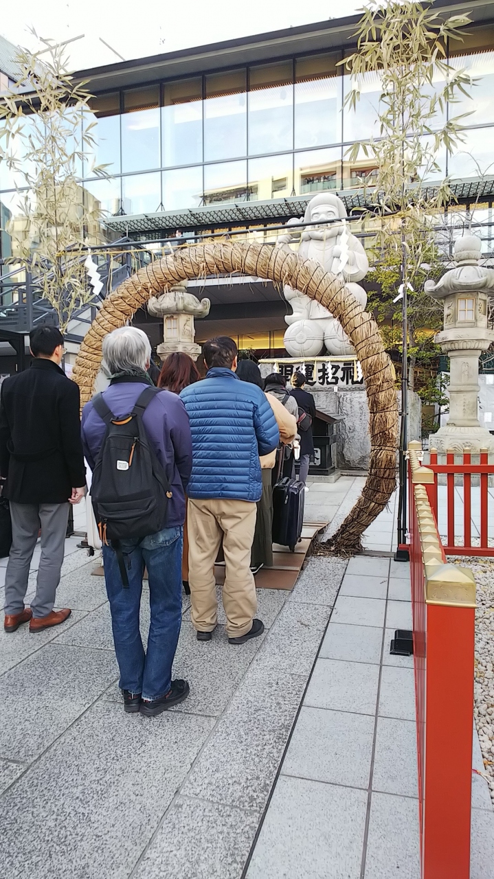 比較的新しいが大きさは日本一だそうで、俵に乗った開運大黒さまは、新年には大人気の様で15日過ぎても列があった。茅輪がありましたが、特に作法の記述はなくみなさんただ通り抜けているだけでした。
