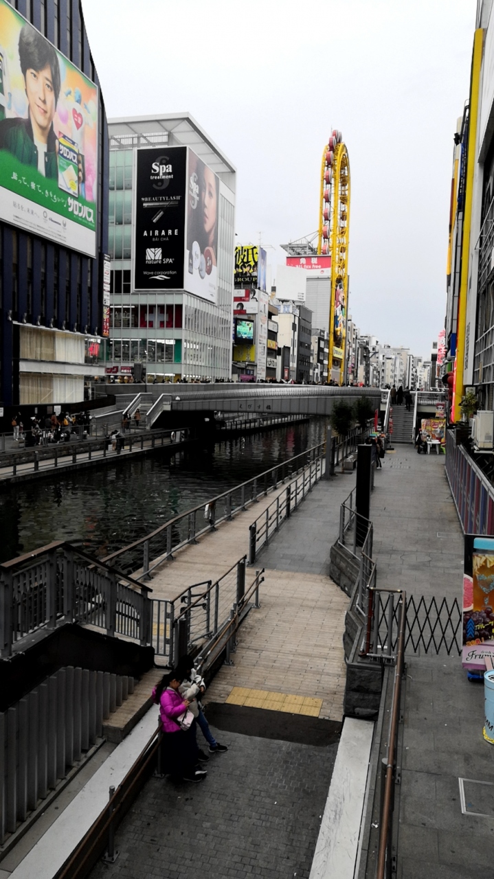自然な感じがまったくないので、狭い運河というか水路のような感じです。ミナミの中心を東西に走り、周辺にはお店が乱立している観光名所です。この川自体は全然魅力的だとは個人的には思いませんが、間違いなく大阪の名所の一つではあるとは思います。