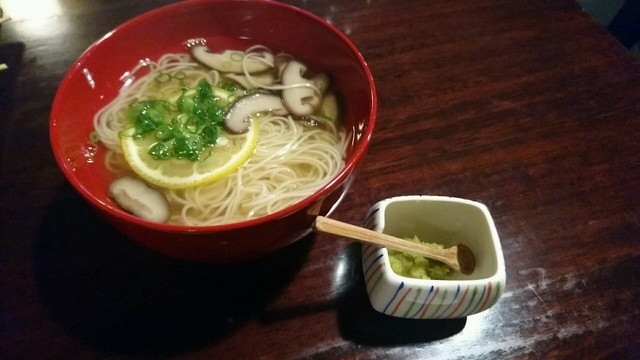 日本酒も地酒を豊富にラインナップ。1合目が鷹来屋の特別純米、2合目は豊潤の特別純米。をいただきました。