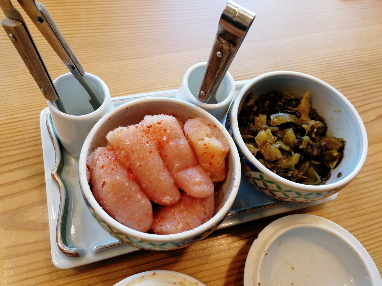 これに、机の上に置いてある辛子明太子と高菜漬けが食べ放題、ライスもお替り無料でした。