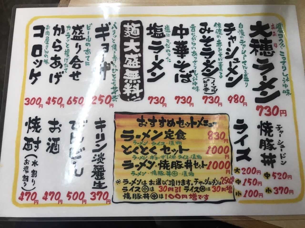 麺大盛りが全て無料