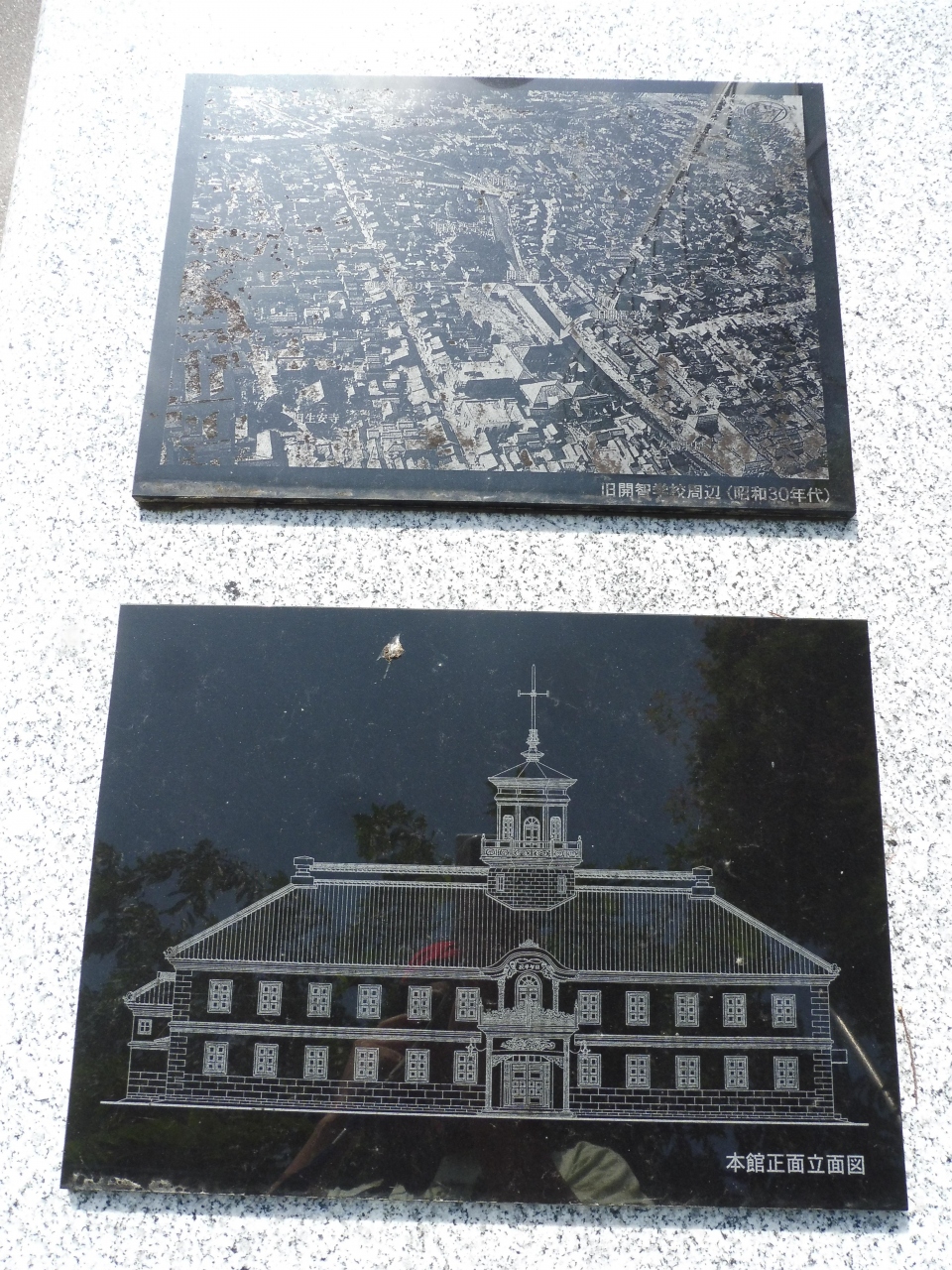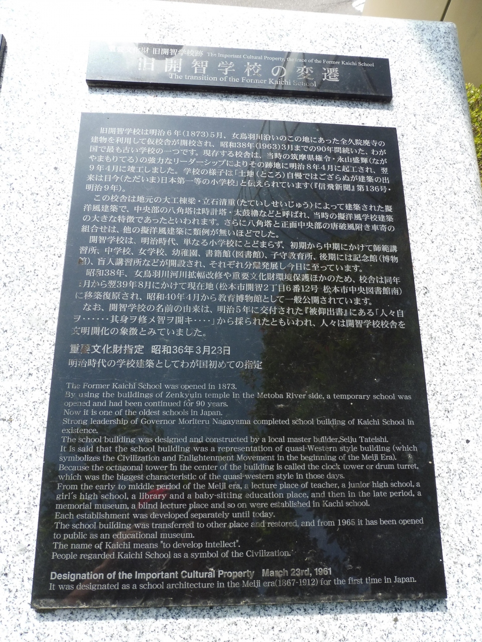 重要文化財の明治初期の学校建築で有名な開智学校の校舎、今は松本城北側に有りますが元々ここに有って移築されたそうです。