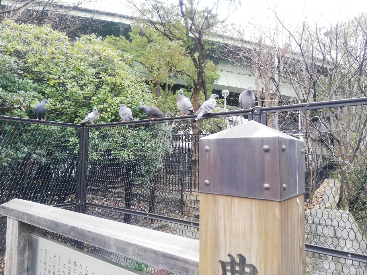 中央区役所のすぐ東側にある橋です。最寄り駅は堺筋本町駅3番出口です。この辺りは今は高速が入り乱れる現代的なエリアですが、400年程前には人々が耕作で行き来していたと思うと感慨深いです。私が行った時は鳩が沢山いて、のんびりした雰囲気になっていました。