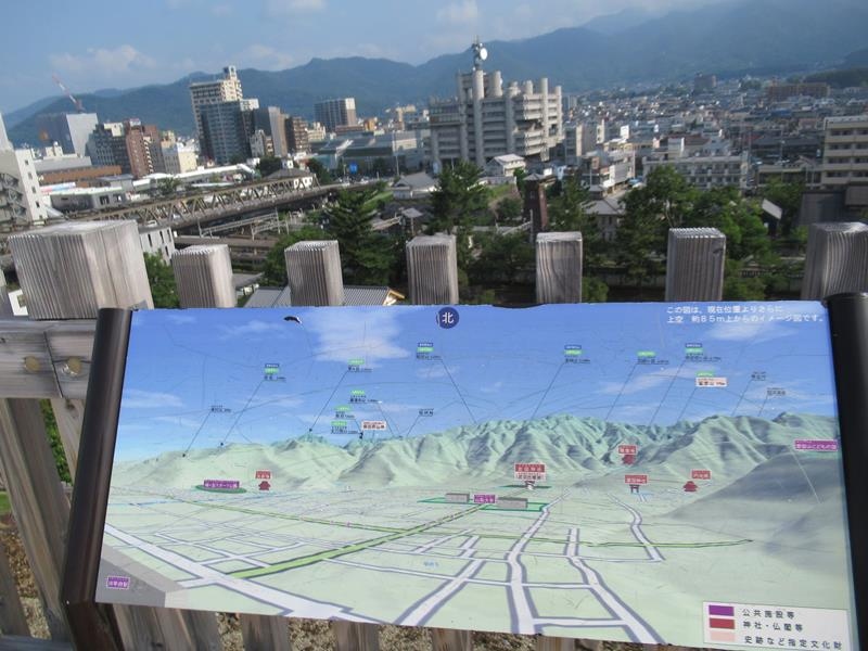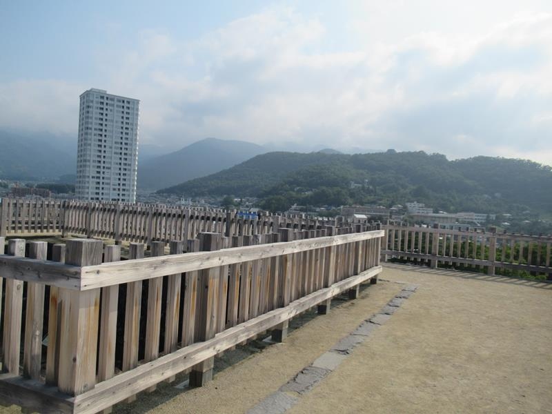 案内看板には築城当時の姿で残っていると書かれていました。天守が現存しないのは残念ですが、高台にあるこの場所からは甲府駅や甲府市街、そして南アルプスなどの景色を存分に楽しむことができました。復元された稲荷櫓もよく見えます。