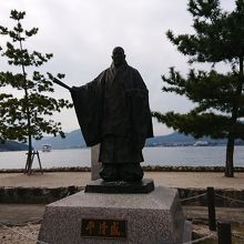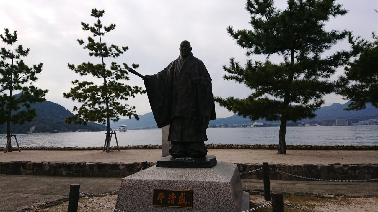 世界遺産厳島神社の玄関口宮島桟橋をフェリーで降りて海沿いに行くとすぐに平清盛公の像があります、厳島神社さんは平清盛公と縁のある場所で、現在のように大規模に海の上に社殿を整備したのが平清盛公だそうです、平清盛公の像から海沿い歩いて行くと平清盛公の奥さんの二位の尼の燈籠もあり歴史を感じさせられる場所です。