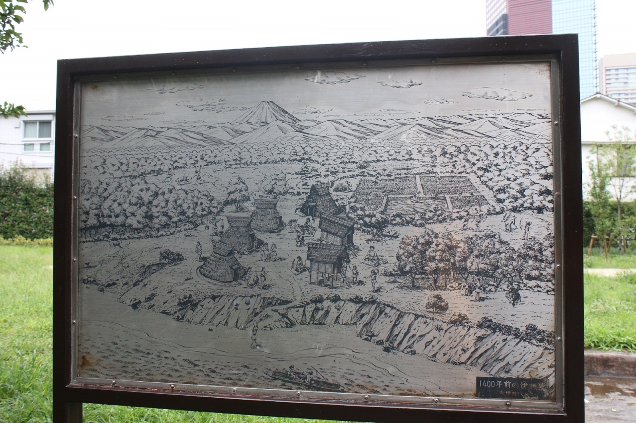 縄文時代の住居跡の公園で、江戸時代には武家屋敷、明治期には皇族の住宅となり現在は公園になっています。住居跡として基礎が展示されているほか当時の様子を描いた案内板が設置されていたりします。遊具もあり、公園の敷地も都内の一等地としては非常に広いので子連れでも楽しめる公園だと思います。