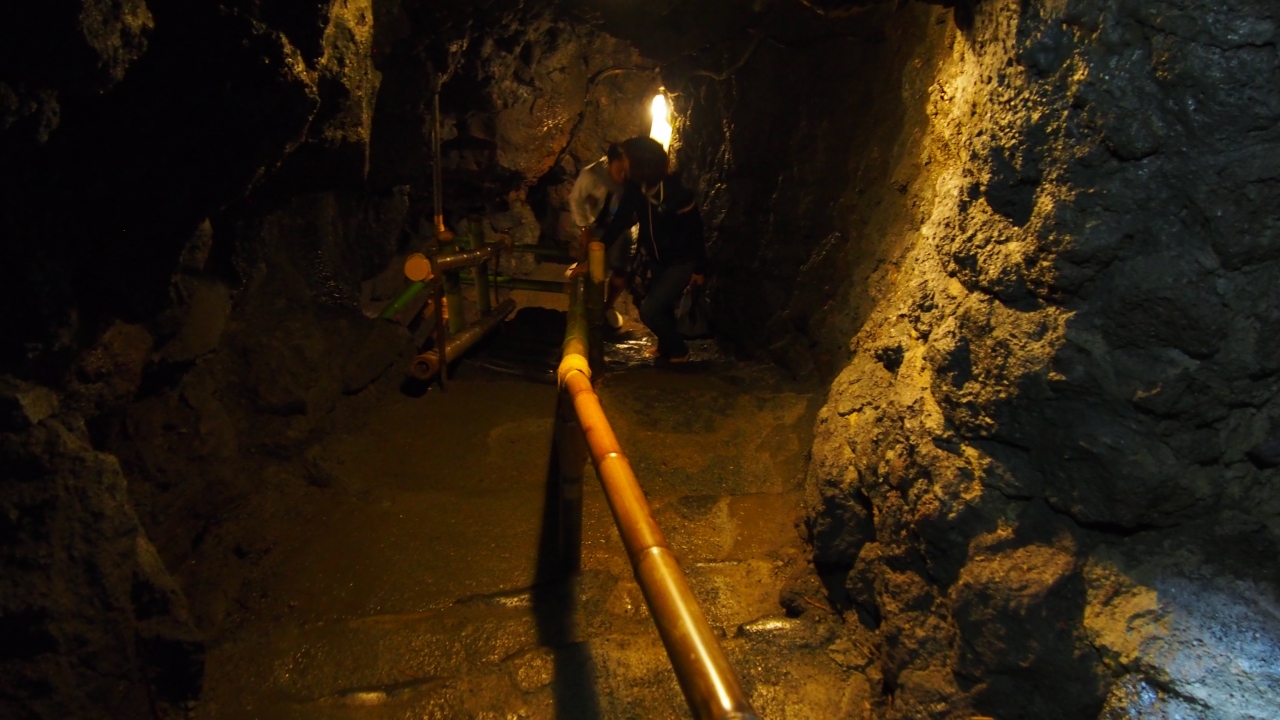 入るにはヘルメットを着用します。そんなに広くはありませんが、途中天井が低くなったり、かなり狭いところもあり高低差があります。閉所恐怖症の人やお年寄りの人だと少し厳しいかもしれません。