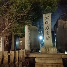 門前仲町を歩いていると力士碑という看板が矢印といっしょに案内されていたので向かって見ると、富岡八幡宮の大鳥居くぐった横にありました。