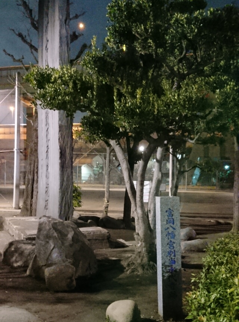 後ろにある石碑があまりにも大きいため、永代寺跡の石柱はとても小さく感じてしまいます。
