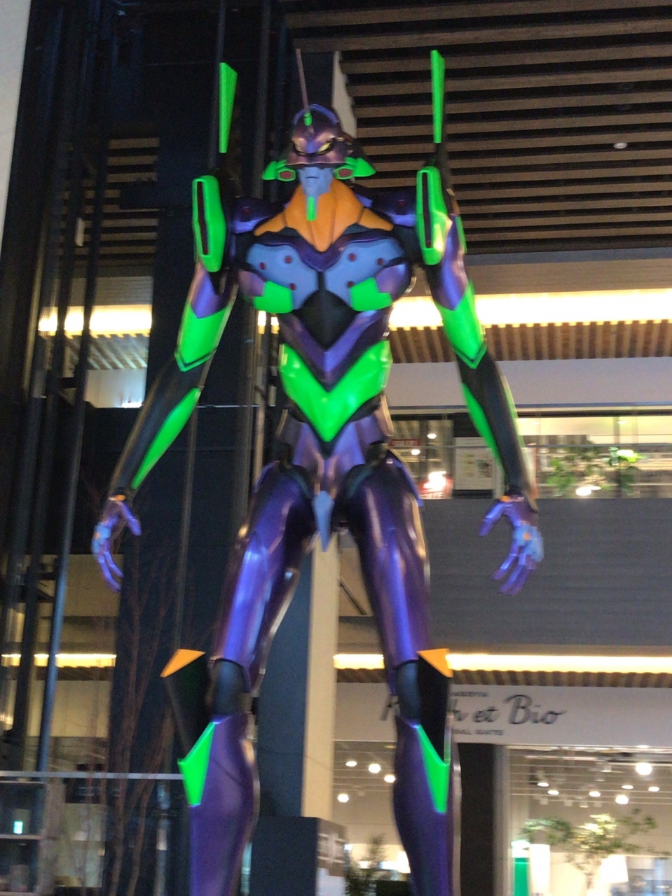 ささしまライブグローバルゲートの一階アトリウムに2016年NEXCO中日本の協力でEXPASA足柄下りに登場した伝説の日本最大級初号機巨大立像エヴァンゲリオンが登場!