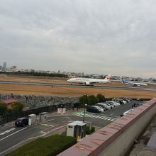 大きな飛行機が降りる場所に近く、地面に着いた瞬間に煙が上がるところまで見えます。