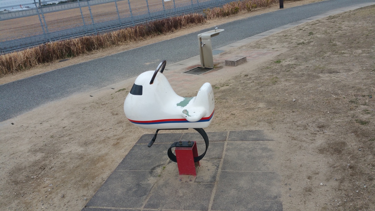 南寄りの所に遊具のあるキッズエリアがあり、あまり他でみかけない感じの遊具や空港のそばらしい飛行機の乗り物がありました。
