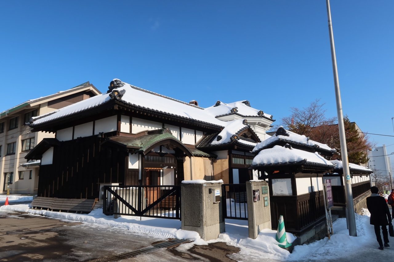小樽で海産物によって富を築い遠藤又兵衛の家屋です。明治35年に建てられ、木造建築です。外観は和風の家屋をベースに、部分的に洋風の屋根形状が取り入れられており独特な景観です。