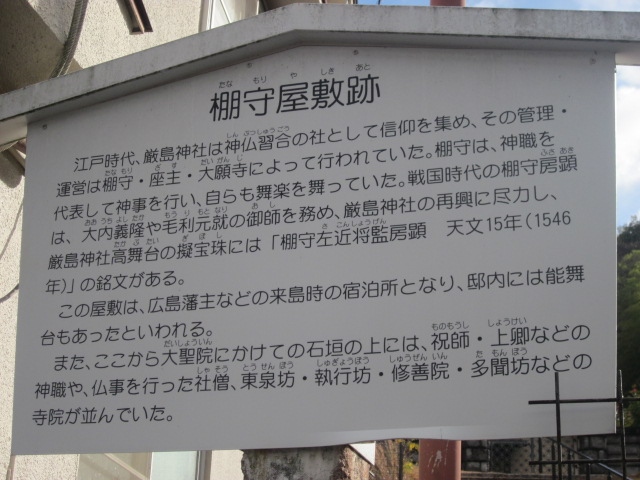 宮島一古い街並みとして知られる滝小路沿いにある名所の一つですが、こちらに関しては、”跡”の呼称が示す通り、現在は残念ながら往時の遺構は残されていません。