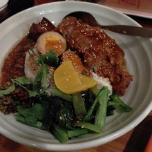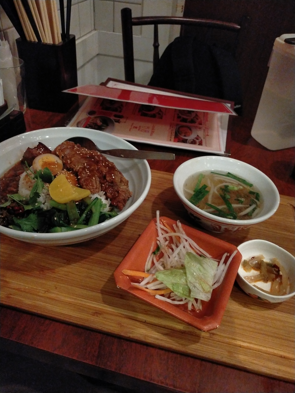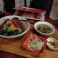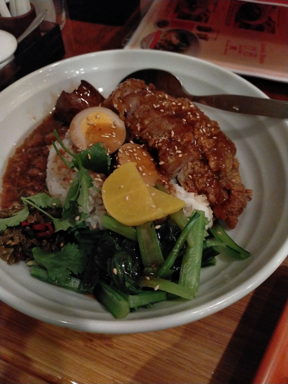 ランチメニューは台湾の屋台飯の定番のルーロー飯やパーコー飯やビーフンなどがあってサラダとスープ代わりの台湾ラーメンの小鉢がついて税込み980円でした。