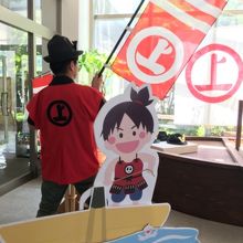でも、ロビーにあったこんなはっぴで、充分満足する夫(笑)。