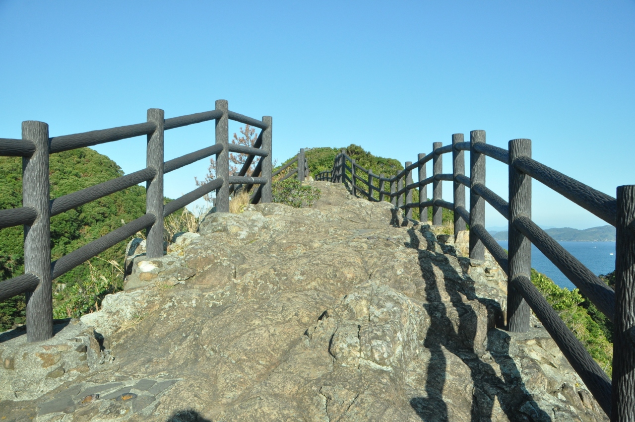 朝ホテルを出て、この日最初の見学地は馬が背。土地勘がないのでレンタカーのナビだけが頼りだ。国道から狭い枝道に入るまでは良しとして、山道を登り始めるとメチャメチャ道が狭かった。車を駐車場に置いた後、遊歩道を10分程歩くと展望所があり、断崖絶壁の柱状節理を見ることができた。その後更に進むと、まさに馬の背と言いたくなるような岩場が続き、そこには目の前には絶景が広がっていた。この景色を見ていると、はるばる九州まで来た甲斐があったと思った。