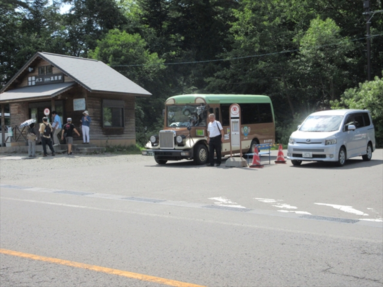 裏磐梯高原駅から出る桧原湖周辺をを周遊するバスで、通称は森のくまさんとなっていました。運営は磐梯東部バスが行っているようです。何でも使用済みの天ぷら油を近隣から回収して、それを燃料として使っているそうで、エコツーリズムの一環としても活躍しているそうです。小さい子供連れやお年寄りには特にお勧めだと思います。