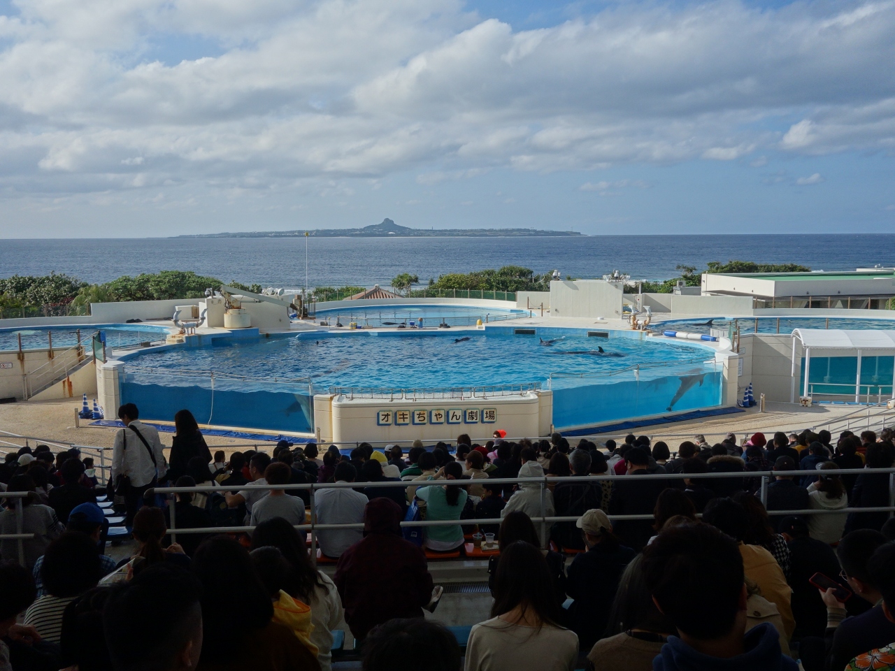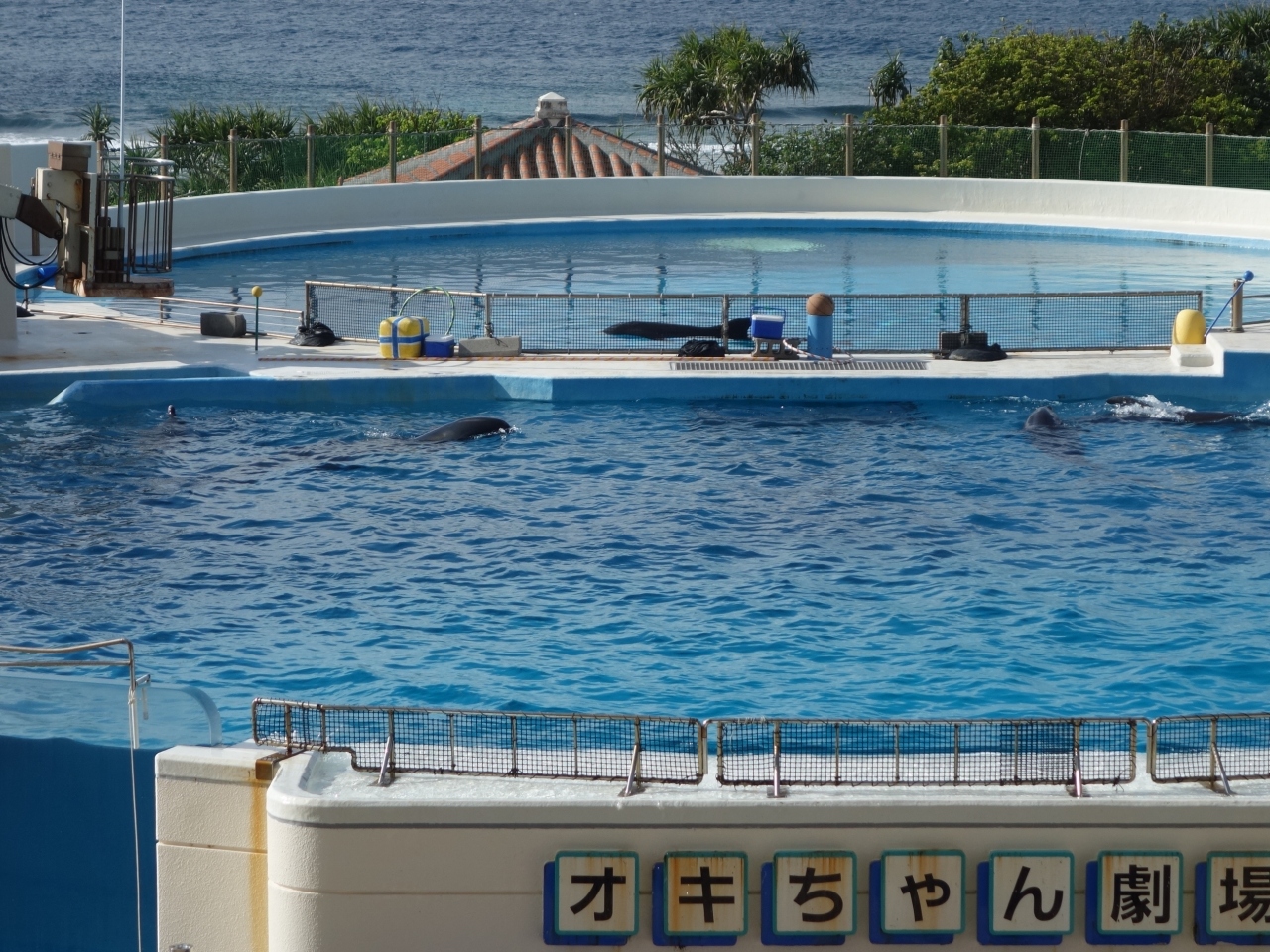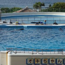 屋外のプールでやるイルカのショーです。迫力があります。ここにきたら必見のイベントです。パンフレットにしっかり公演時間が書いてありますので,それにあわせた予定を組みましょう。実演は正味15分ほどです。良い席を取るには,早めに行ったほうがいいでしょう。