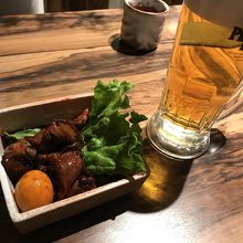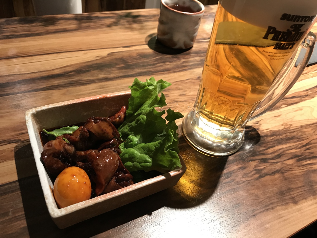 甲府駅の駅ビル五階にある郷土料理の店です。ちょい飲みセットが目につきました。料理一品と飲み物で800円。料理は甲府名物の鳥モツ煮も選べるということで、これに生ビールをいただきました。昼から飲んでしょうがないなと思いながら、久々の鳥モツ煮はやはり美味しかったです。