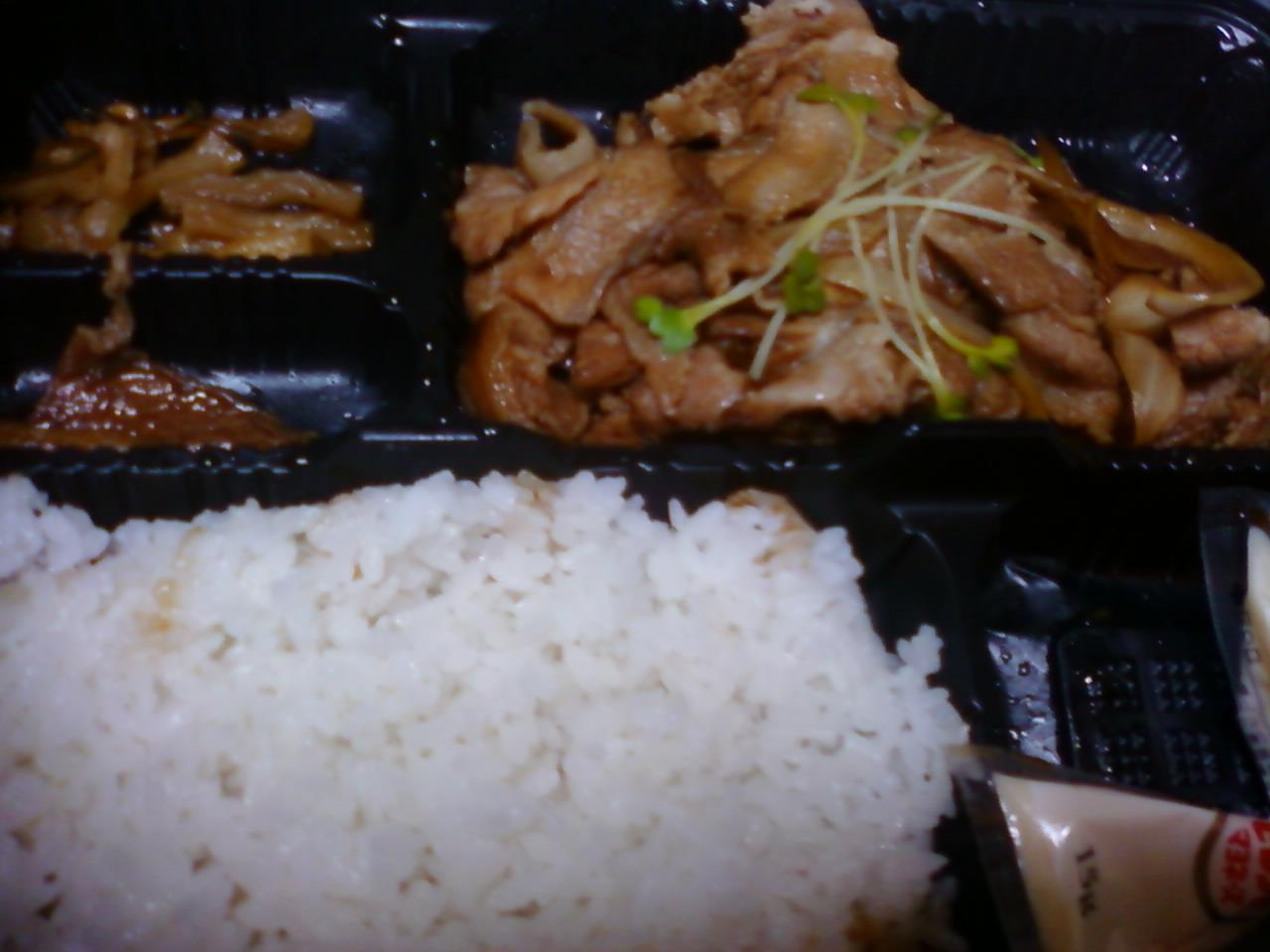 ここのしんぱちさんは、小田急線本厚木駅の東口、改札を出てすぐのところにあるミロードイーストのお店の一角にあります。この場所はなぜかたくさんのお店が出たり入ったりしていて、ここの食堂もまだ入ってからまもないです。カウンターの席がいくつかあってせわしないのですが、帰宅途中のサララーマンらしき人たちで店内はほぼ満席状態でした。店内が落ち着かないので、豚の生姜焼き弁当をいただきました。美味しかったですが、付け合せなどもあまりなく、これで900円近いというのはかなり高めです。