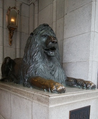三越日本橋本店の大通りに面した正面出入り口(ライオン口)の両脇に座している大きいライオン像です。目印になるのでよく待ち合わせの場所に使われます。