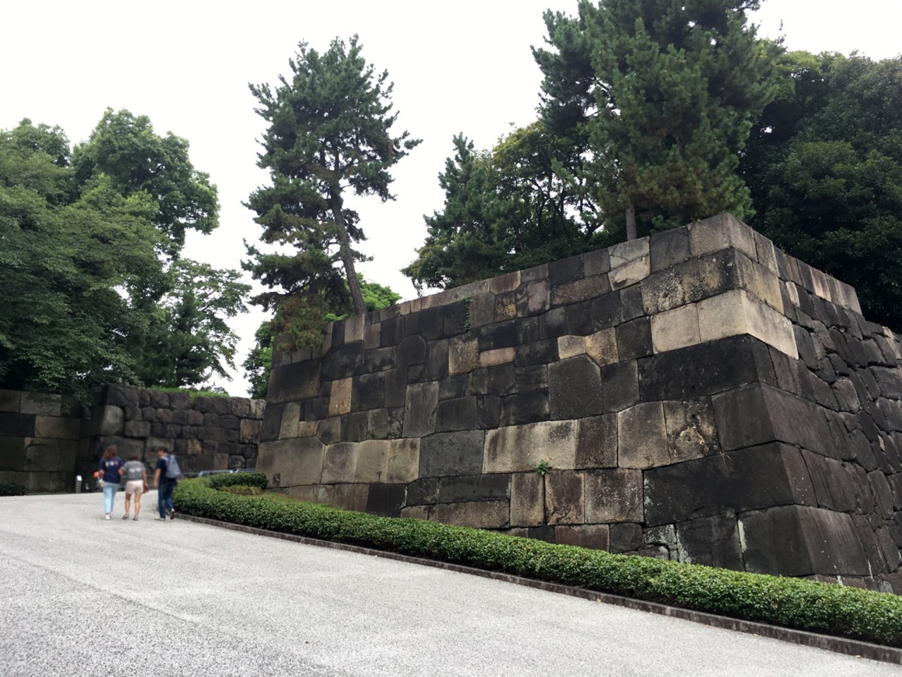 東京駅方面から大手門を通って江戸城に入った場合、天守台などがある本丸エリアに入る大手コースにある数ある門のうち、最後にある門がこの中雀門。門自体は残っていませんが、坂にそびえる立派な石垣が見どころです。コの字に折れ曲がった構造にもなっており、守りの工夫を見ることができる場所です。また石垣の積み方も複数種類が併用されているのも見どころです。