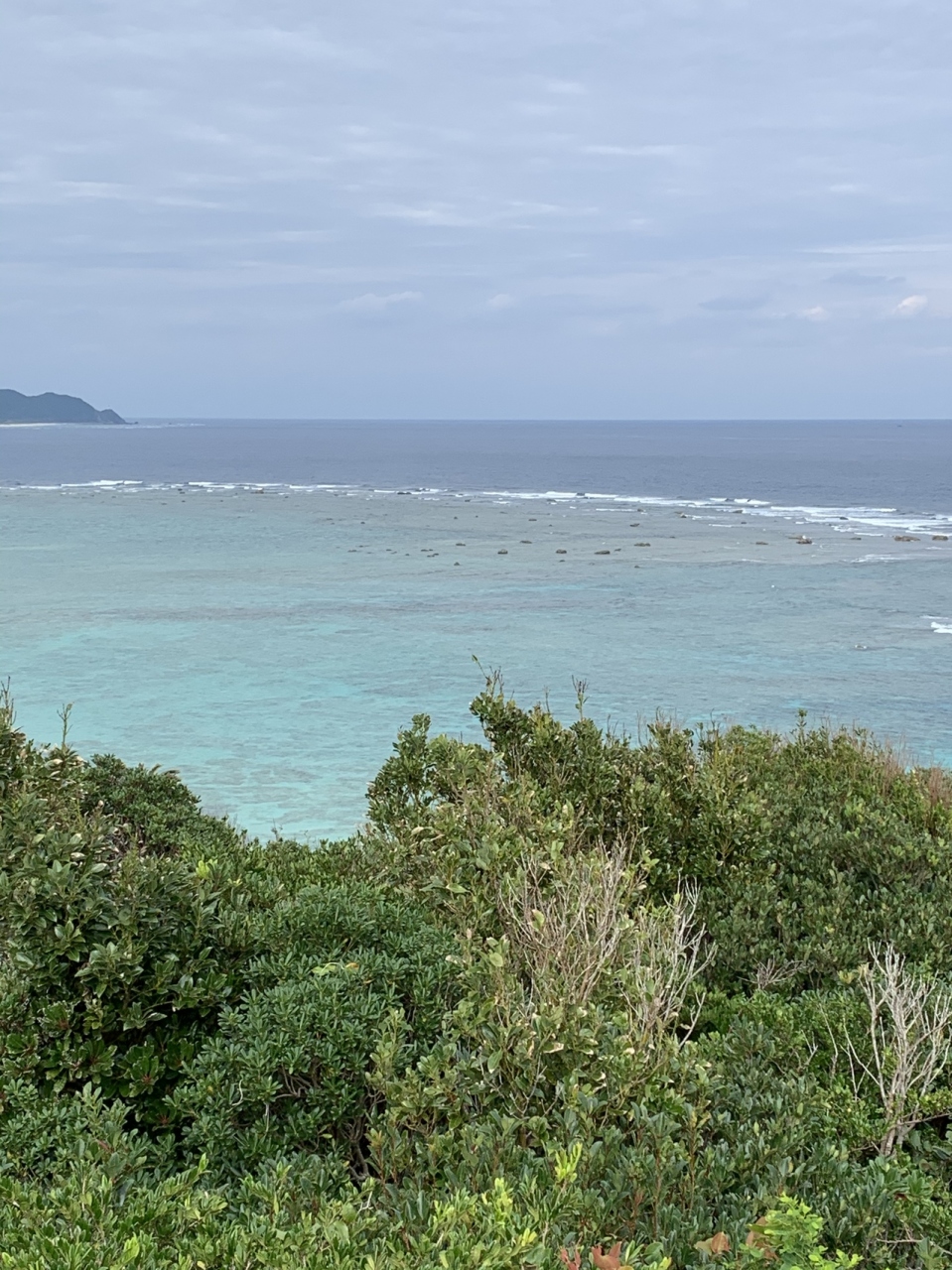 サンゴ礁が透き通って見える綺麗な海が眼下に広がります。