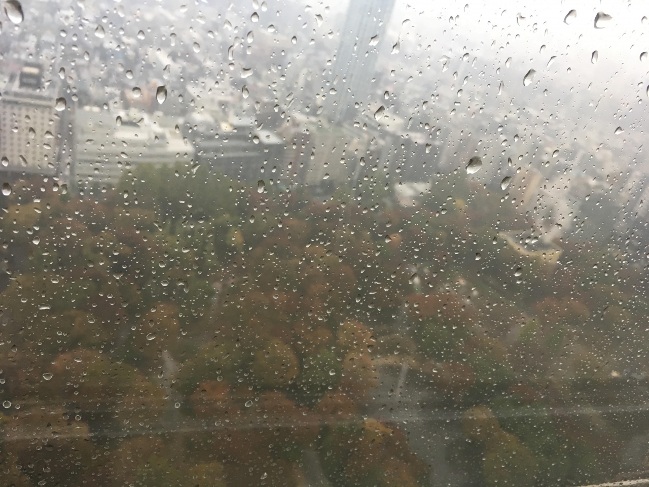 都庁展望室に行った時、下を覗いてみたら緑豊かな公園がありました、もう紅葉の時期だったので、きれいに色付いてきました。帰えるとき寄ってみることに、とても広くて、雨だったので、一部しか回れませんでしたが、きれいな滝のオブジェもありました